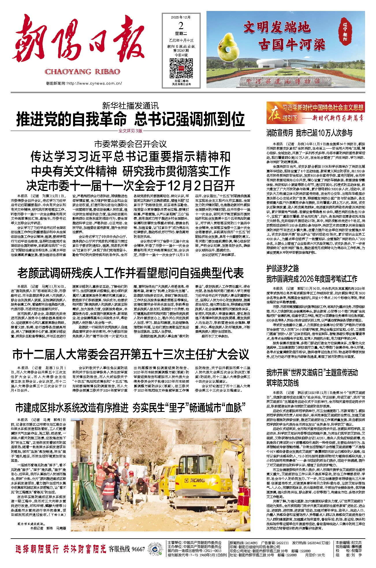 会议传达学习了省委十三届十次全会精神,听取了市委十一届十一次全会筹备和有关文件起草情况汇报。会议决定,市委十一届十一次全会于12月2日召开。会议指出,“十五五”时期是我国基本实现社会主义现代化夯实基础、全面发力的关键时期,也是推动新时代朝阳全面振兴的关键时期。召开市委十一届十一次全会,研究关于制定朝阳市国民经济和社会发展第十五个五年规划的建议,对于深入贯彻落实党的二十届四中全会精神,全面落实省委十三届十次全会部署要求,系统谋划我市“十五五”时期经济社会发展,具有十分重要的意义。有关部门要加强统筹协调,精心组织安排,严明会议纪律,发扬良好会风,确保会议顺利召开、圆满成功。