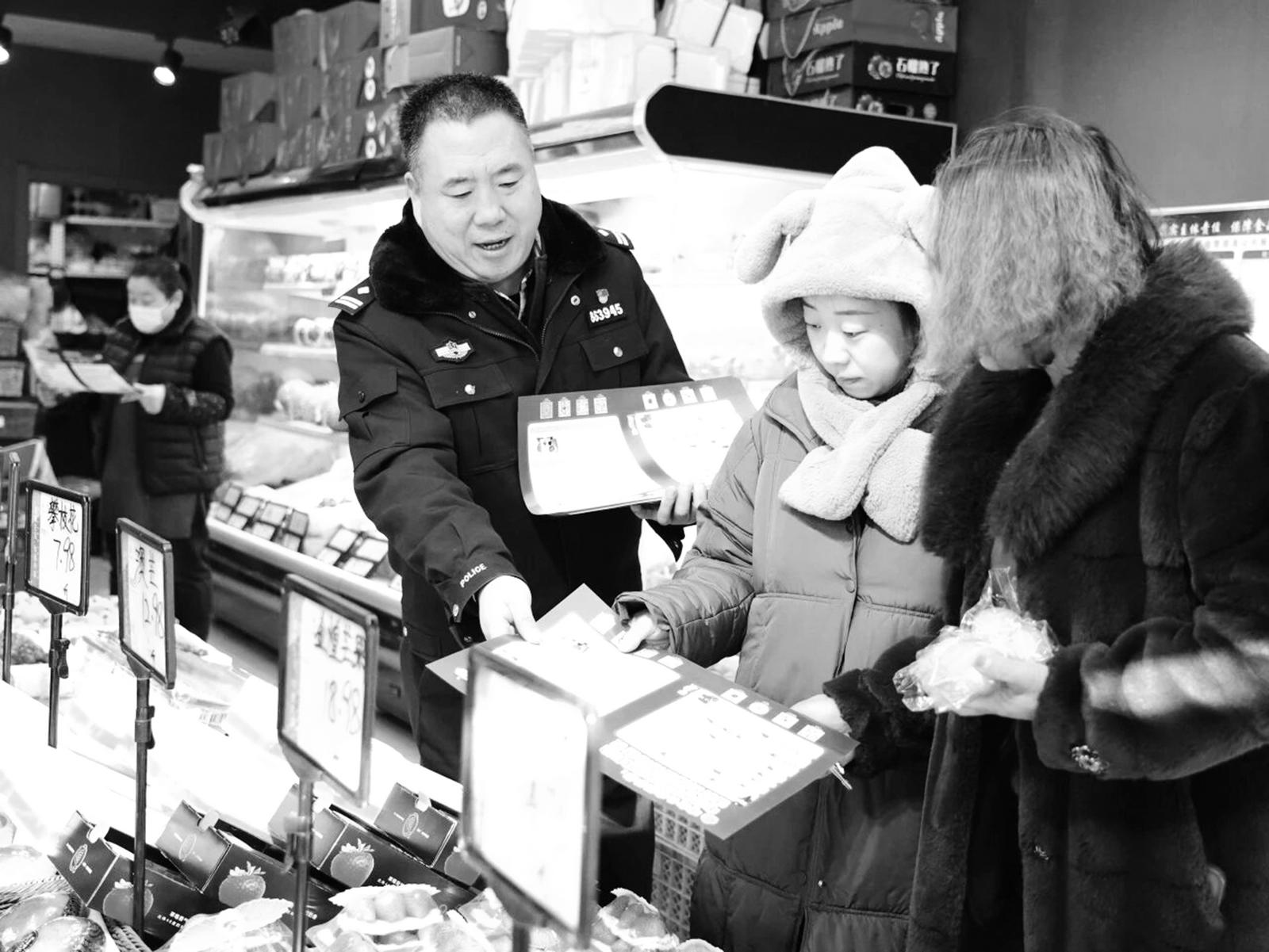 图为辖区民警向群众发放宣传资料。