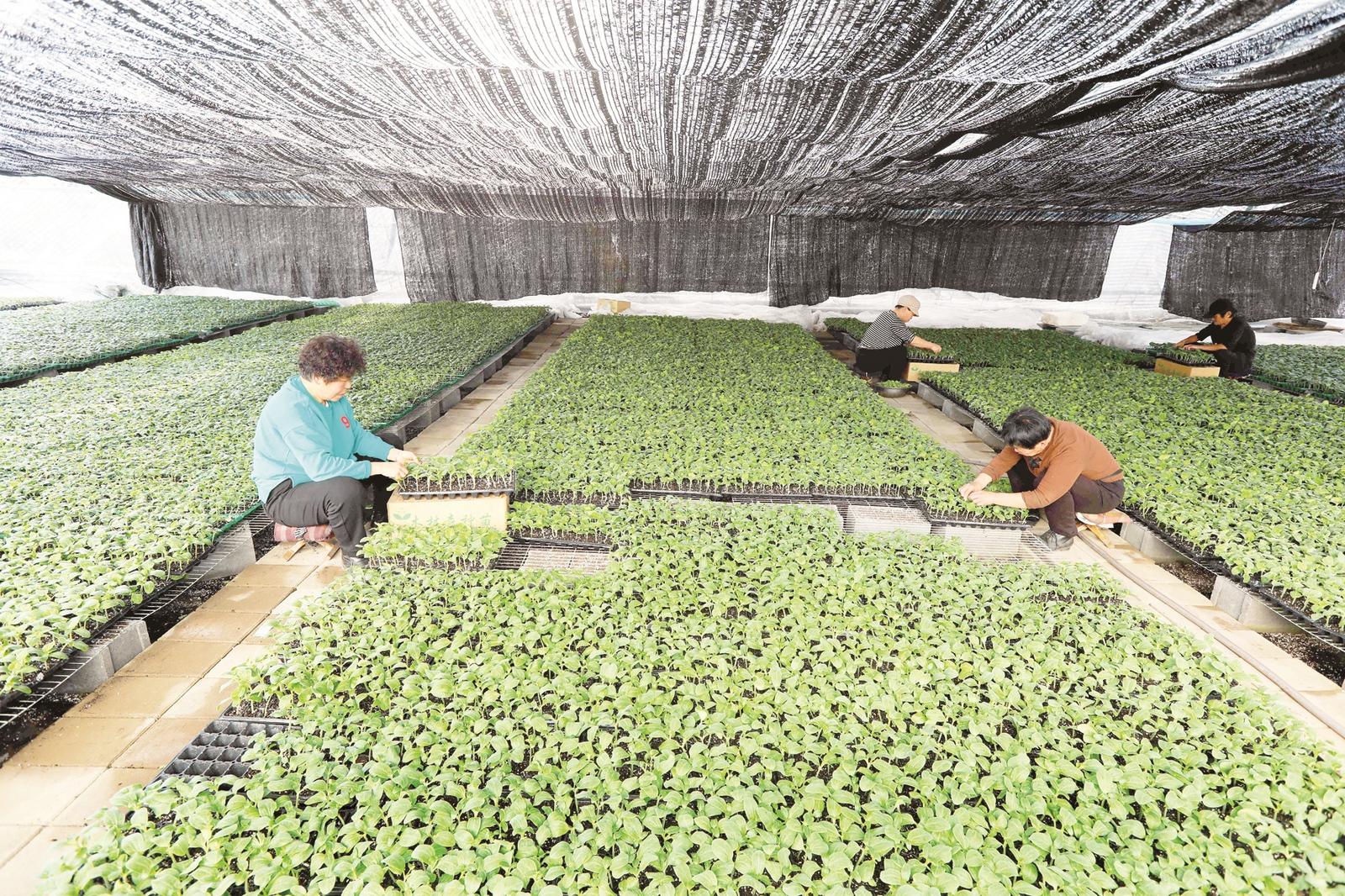 日前,走进林森蔬菜种植合作社,棚外寒风凛冽,棚内温暖如春。映入眼帘的是满眼绿色,只见村民搅拌基质、装盘点种、覆盖苗盘、浇水、盖膜……一派繁忙的景象。该合作社负责人介绍,合作社有占地15亩的温室大棚10栋,主要培育西红柿、黄瓜、甘蓝、辣椒等品种,全年育苗800万株,蔬菜苗在满足本地需求的同时还远销黑龙江、吉林、河北、内蒙古等地,年利润80余万元,每年用工40余人。据了解,该村有育苗合作社4个,有占地40余亩的育苗温室大棚25栋,年育苗可达2000万株,年利润200万元。