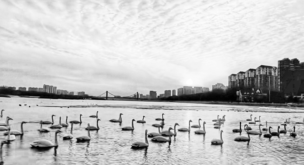 近日,记者在朝阳大凌河风景区看到,天空被落日晕染成一片熔金之色,层层散射的彩霞如锦缎般铺展天际,楼宇剪影在落日下勾勒出城市温柔的轮廓,大凌河人工湖亦被暖橙霞光浸透,其中燕都大桥东侧的流动水域更是泛起粼粼波光。水面上,成群天鹅悠然游弋,修长的身影与金色波光相映成趣,为冬日的城市绘就了一幅怡美醉人的画卷,让天地间满是温柔与诗意。据了解,自这群大自然的游子栖临这座美丽城市驿站以来,不仅为市民带来了赏心悦目的景致,更收获了全城的暖心呵护,市民们纷纷为天鹅投食补给,用点滴善意守护着这份灵动和谐的冬日景观,让人与自然的美好共生在凌河之畔静静延续。本报记者 孙良摄