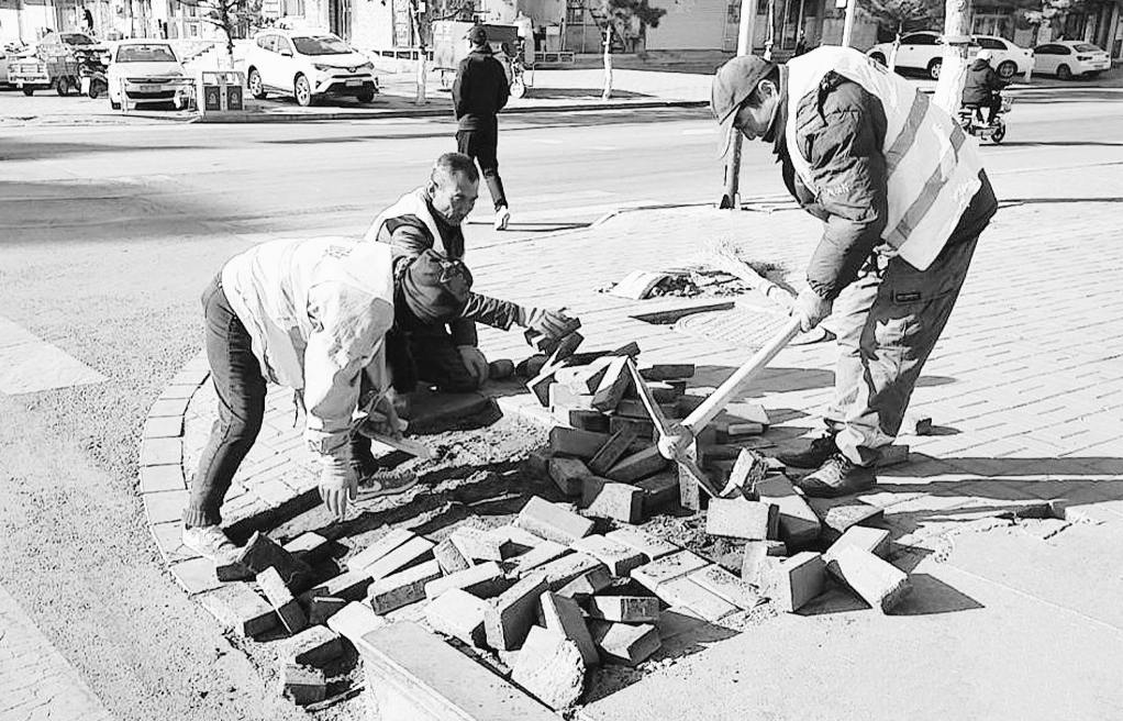 图为路面方砖维修现场。刘艳丽 本报记者 王文龙摄