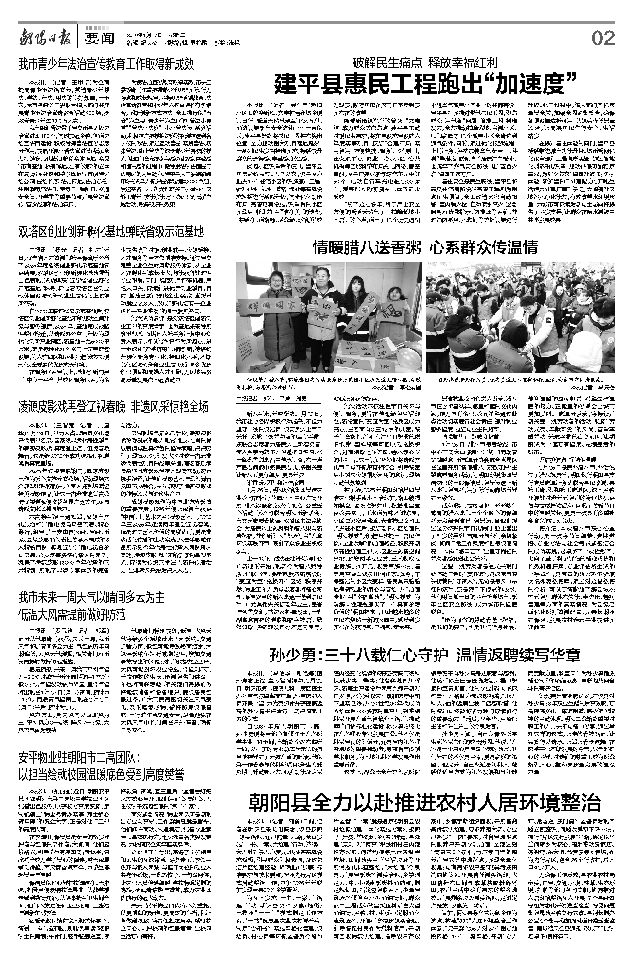 本报讯 (梁丽丽)近日,朝阳安平集团驻朝阳市第二高级中学物业团队凭借出色服务,收获校方高度赞扬,定制锦旗上“物业尽责办实事 师生舒心赞口碑”的烫金大字,正是对他们工作的高度认可。