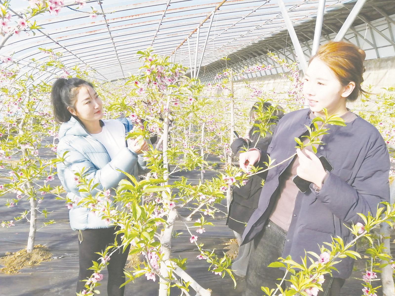 室外寒气袭人,棚内温暖如春。日前,绥中县大台山65座大棚内的油蟠桃进入盛花期,慕名而来的市民纷纷赶过来赏花。粉嫩的鲜花,散发着香气,让她们神清气爽,连声夸赞,“数九寒天的,能欣赏到春天般的场景,真是开了眼界,不虚此行。”