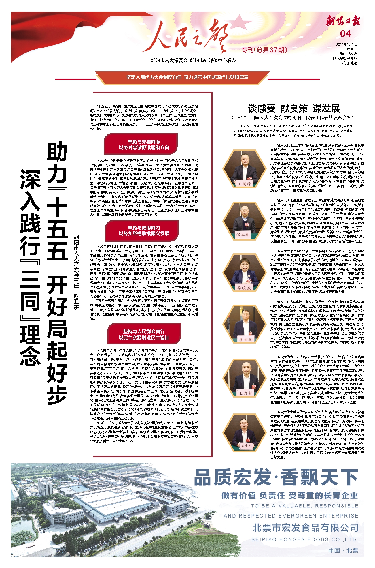 “十五五”开局启新,振兴路远任重。站在中国式现代化的关键节点,辽宁省朝阳市人大常委会锚定“政治机关、国家权力机关、工作机关、代表机关”定位,始终践行与党委同心、与政府同力、与人民群众同行的“三同”工作理念,在对标中心中把准方向,在协同发力中彰显作为,在为民履职中凝聚民心,以高质量人大工作护航经济社会高质量发展,为“十五五”开好局、起好步筑牢坚实民主法治根基。