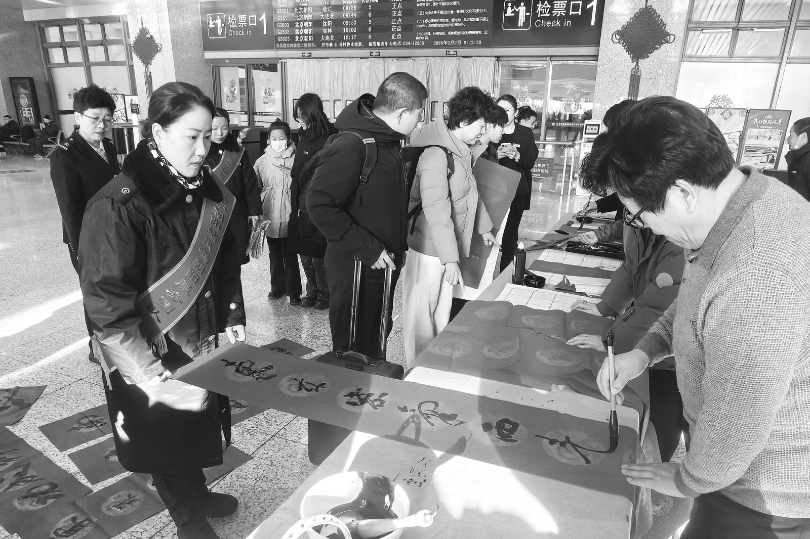 尽管活动现场热闹非凡,但候车室内客流平稳。辽宁朝阳站负责人介绍,当前每日客流量约5000人次,预计腊月二十三(小年)后将迎来高峰,单日客流或突破1.3万人次。为应对客流增长,车站已增设安检通道、优化候车引导,并联合书法协会、志愿者团队持续开展公益活动,让旅客感受“归途如家”的温暖。